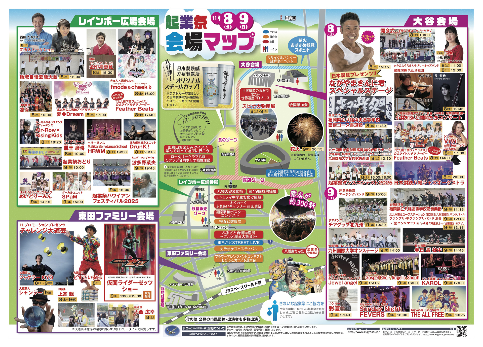 まつり起業祭八幡会場の周辺は、全面駐車禁止となっておりますので、バス等の公共交通機関をご利用くださいますようお願いします。